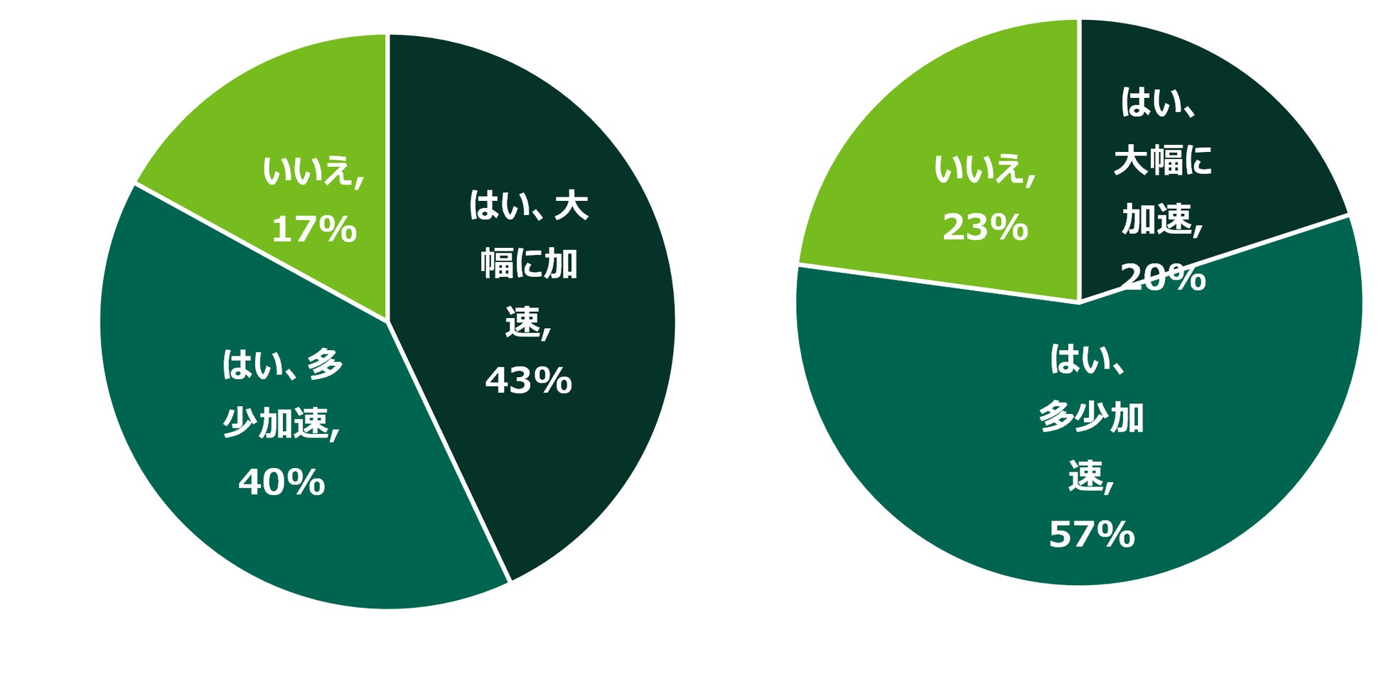 ▼DE&Iの取り組みは加速したか?(左:グローバル 右:日本)
